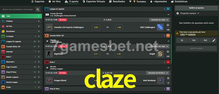 O claze oferece uma grande seleção de opções de apostas em e-sports com probabilidades competitivas